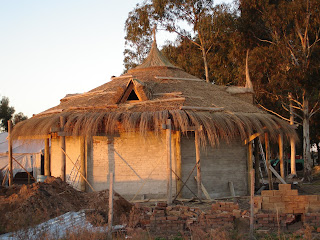 This particular house is farther along, with the thatched roof being worked on in a rather artistic fashion.